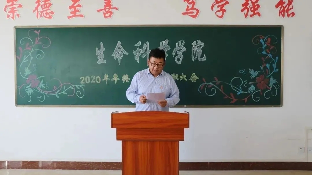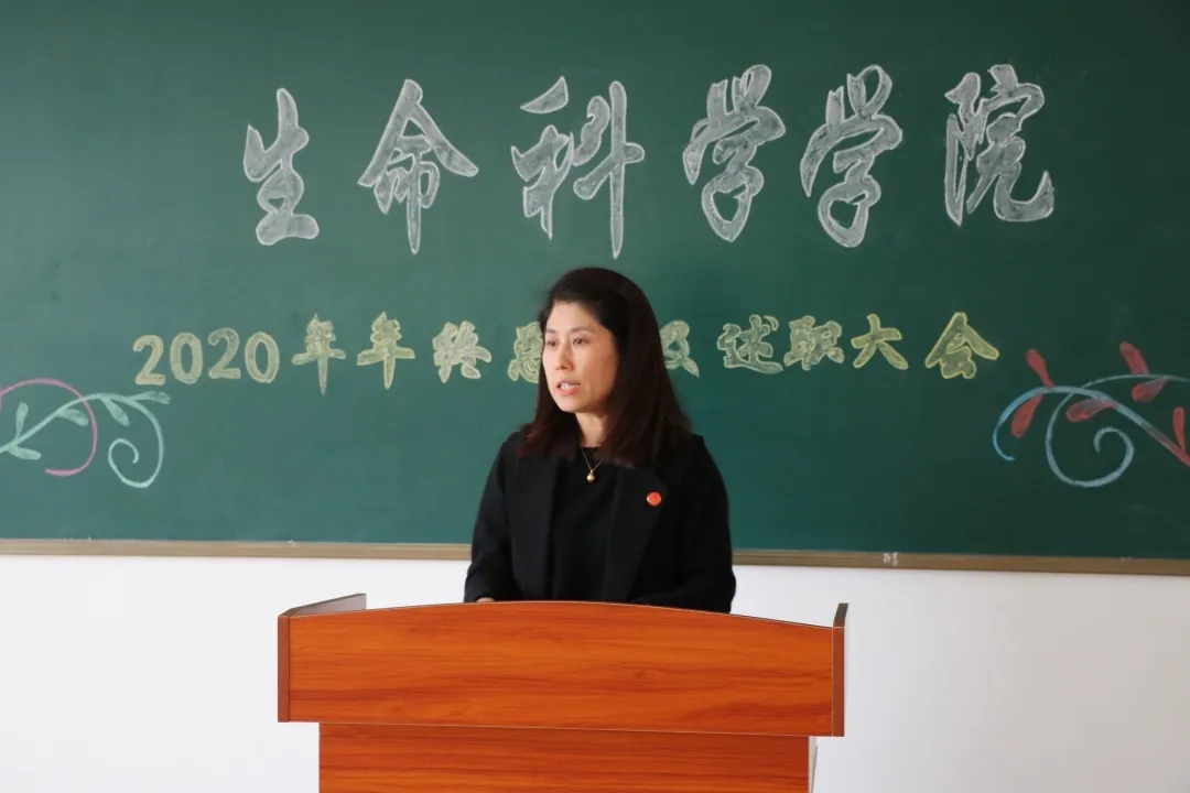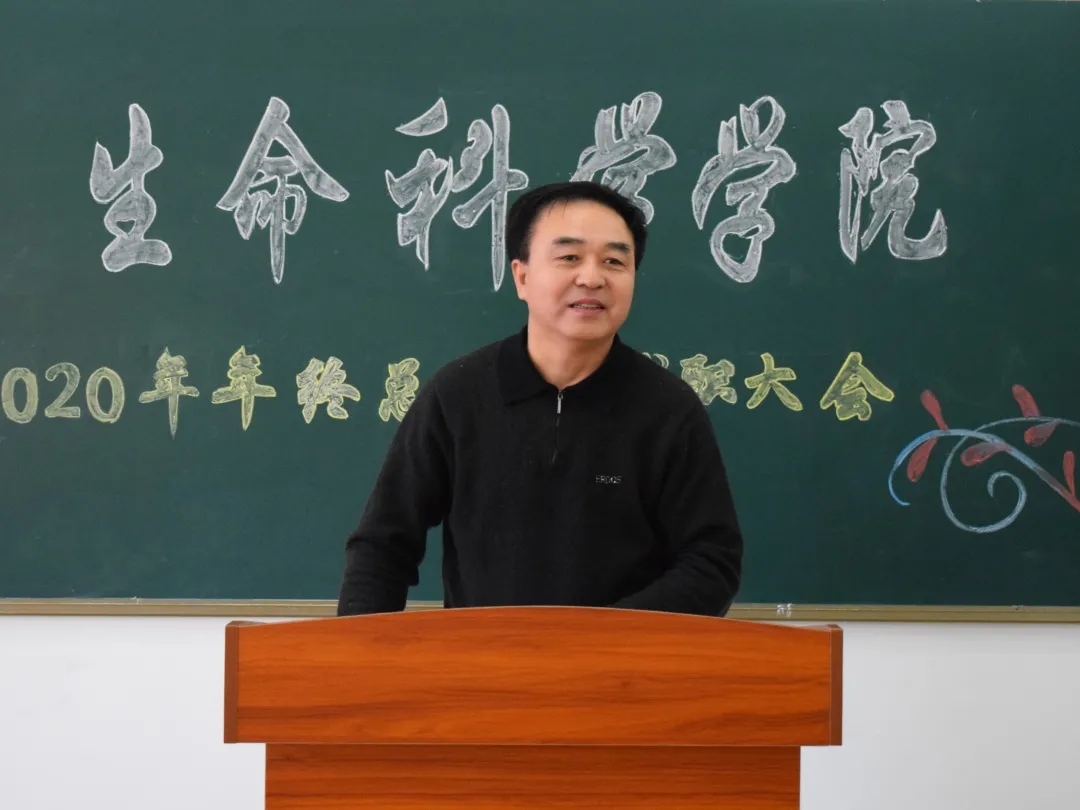立德先立师,树人先正己,要有执着于教书育人,热爱教育的定力才能有着淡泊名利的坚守。在生科有着这样一支队伍,他们坚守着教育的净土、坚守着人格的底线。会上,胡院长对生命科学学院各位教职工这一年来的辛苦工作表示感谢。接着,刘玉敏副院长、贾冬舒副院长、臧连兴副院长分别对学院一年来在学院教学工作、科研及实践体系建设、党建与学工工作取得的成果及问题进行了汇报和总结。