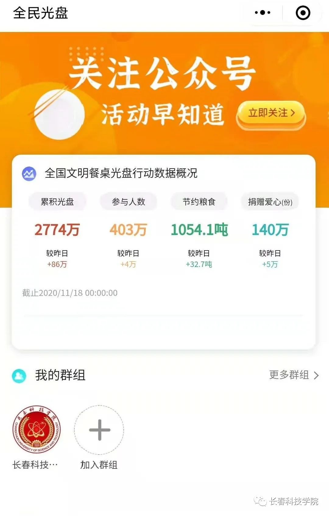 号召师生参与微信小程序“光盘打卡”活动,通过用餐后对“光盘”拍照打卡、AI识别助力光盘行动,截止11月13日,该小程序已提交光盘照片12533次。打卡积分不仅可以换取香皂、耳机、衣架等生活用品,还可以累计学分。