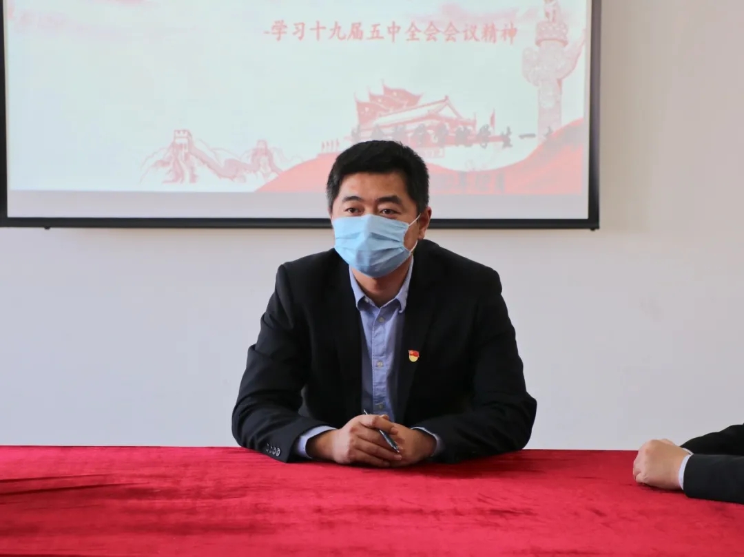 会议开始,姜老师带领学生党员集中学习《中国共产党第十九届中央委员会第五次全体会议公报》,紧紧围绕习近平总书记在党的十九届五中全会上的重要讲话精神,全面回顾了五中全会召开的历史背景、“十四五”规划《建议》起草过程和构成,从深刻认识全会重大意义、准确把握二〇三五年远景目标和“十四五”时期我国发展的指导方针、主要目标、重点任务等多个方面,对五中全会精神进行了系统解读。