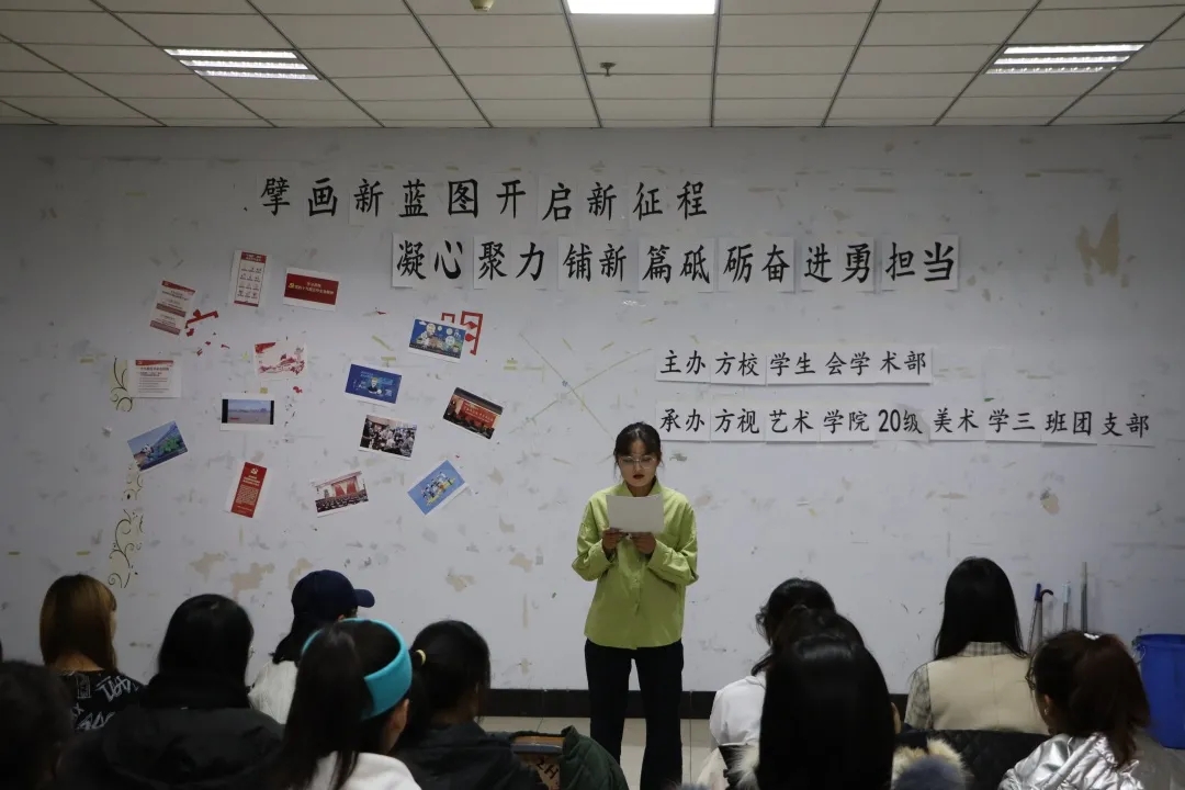 在党的十九届五中全会召开之际,为认真学习宣传贯彻党的十九届五中全会精神,把学院团员青年的思想和行动统一到全会精神上来,把智慧和力量凝聚到落实全会确定的各项目标任务上来,近日,视觉艺术学院开展“擘画新蓝图,开启新征程”的主题团会。