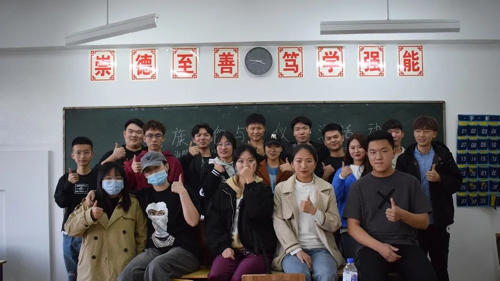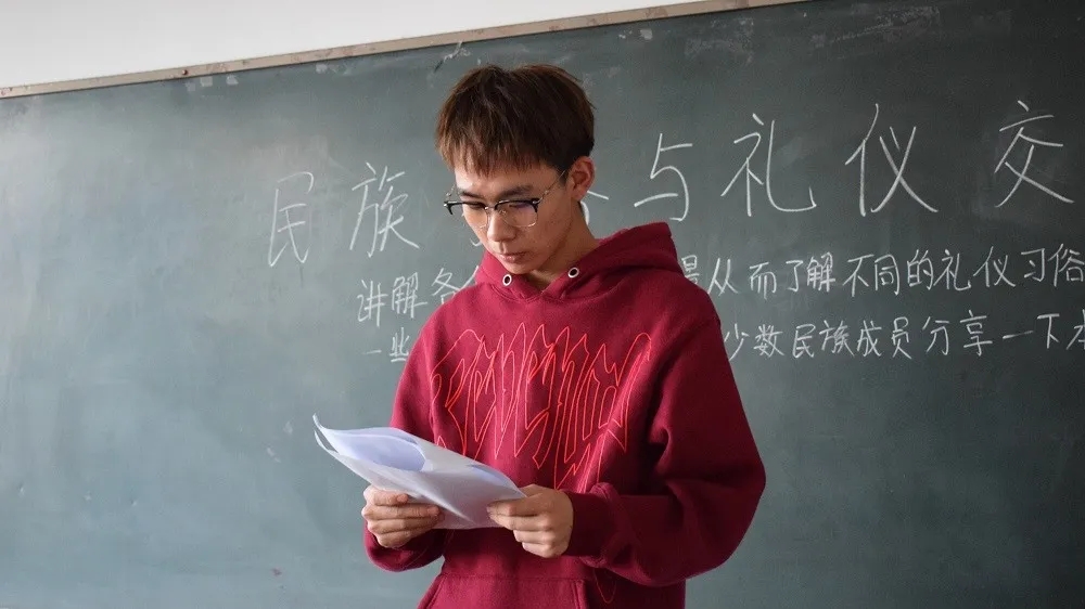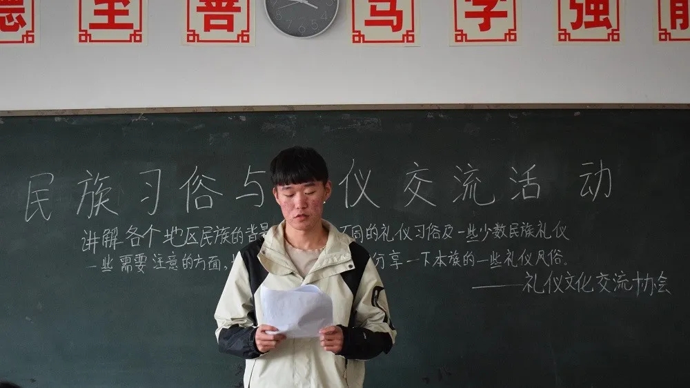 来自蒙古族的袁也同学与来自汉族的高前、张继一、韩星同学,分别介绍了自己民族的饮食习惯、文化艺术、亲属称呼、传统节日等。