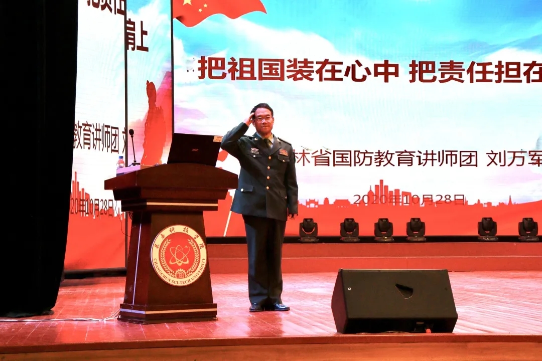 为增强2020级新生的爱国精神,加强国防安全教育意识,我院于10月28日特邀吉林省军区教导大队刘万军教授,在东鳌学术论坛——国际会议中心开展了“把祖国装在心中,把责任担在肩上”国防教育报告。一直以来,我院党委高度重视国防教育工作,始终坚持把国防教育融入立德树人的根本任务之中去,不断推动人才培养计划和国防教育的综合育人工作深入开展。
