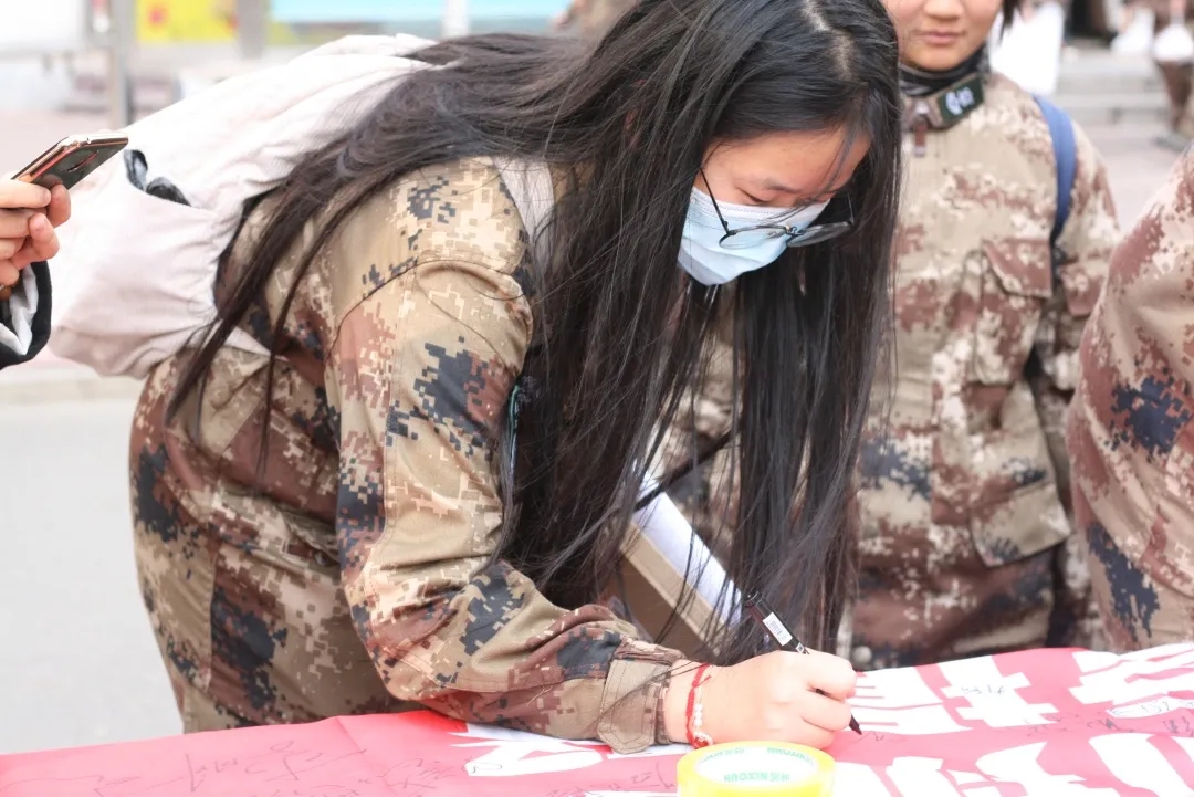 组织同学们在宣传条幅上签名,既调动了同学们参与的积极性,也让更多的人了解了有一种节约叫光盘,有一种公益叫光盘,有一种习惯叫光盘。