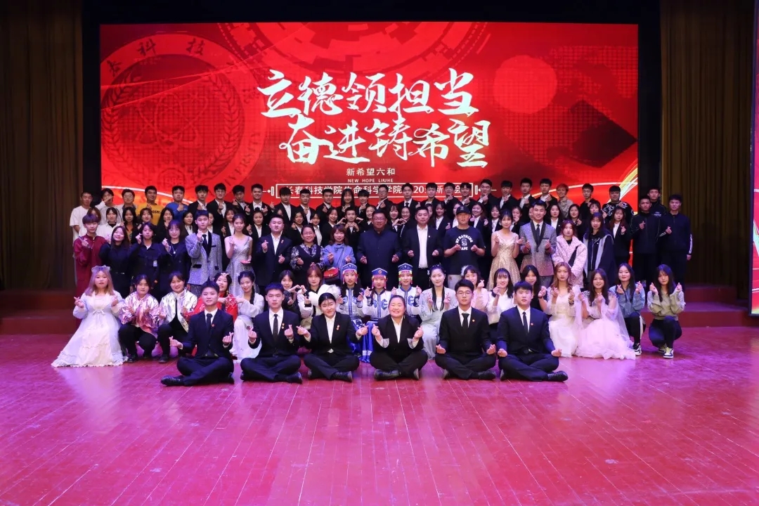 长春科技学院校长秦磊,党委副书记宋学山,校团委书记李可心,各分院党总支副书记,生命科学学院院长胡铁军,党总支副书记臧连兴,副院长贾冬舒,副院长刘玉敏,分团委书记兼学工办主任张海英及各位辅导员,新希望六和集团人力资源部副总经理张国媛,招聘经理丁慧应邀出席本次晚会。