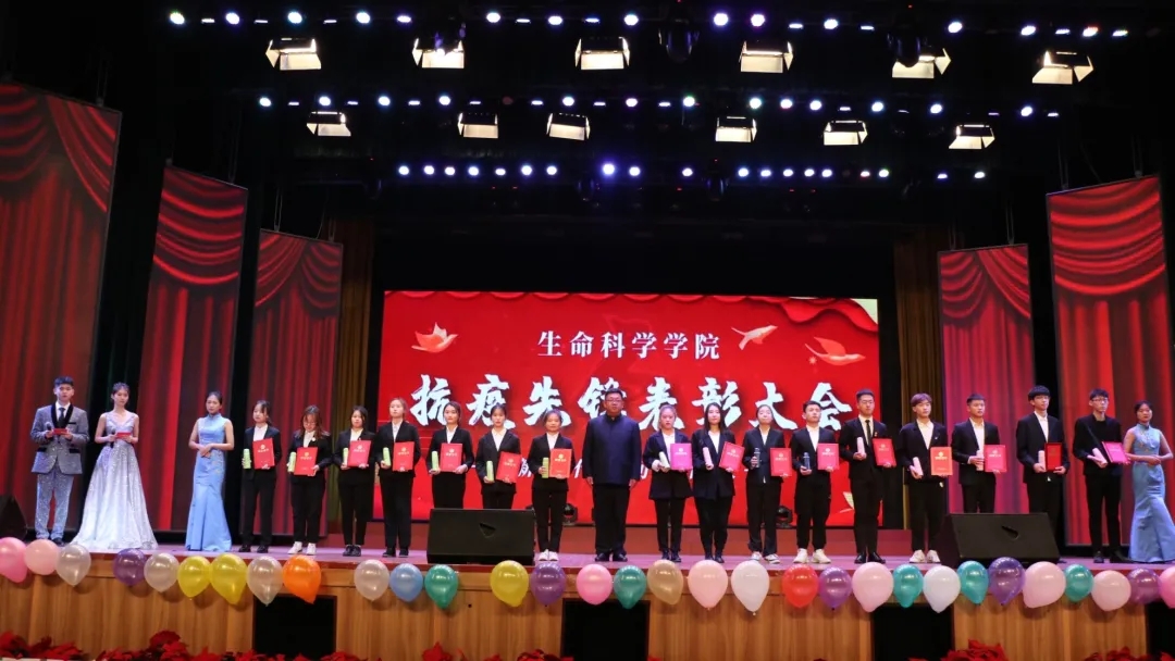 在本次晚会中领导和老师们致辞,期望新生们能够不忘初心,肩负使命,应时顺势,让青春在新时代绽放,让人生在奋进中辉煌。其中我院党总支副书记臧连兴讲到:2020年是不平凡的一年,在疫情期间生科学子充分发挥先锋模范作用,共有39名志愿者以高度的责任感和使命感主动参与到对疫情的防控工作中,带头服从国家及学校有关疫情防控的相关部署和要求,深入自己所在的社区,为抗击疫情贡献出自己的一份力量,一份力量。同时,他为这些同学颁发“青年抗疫先锋模范”荣誉证书。
