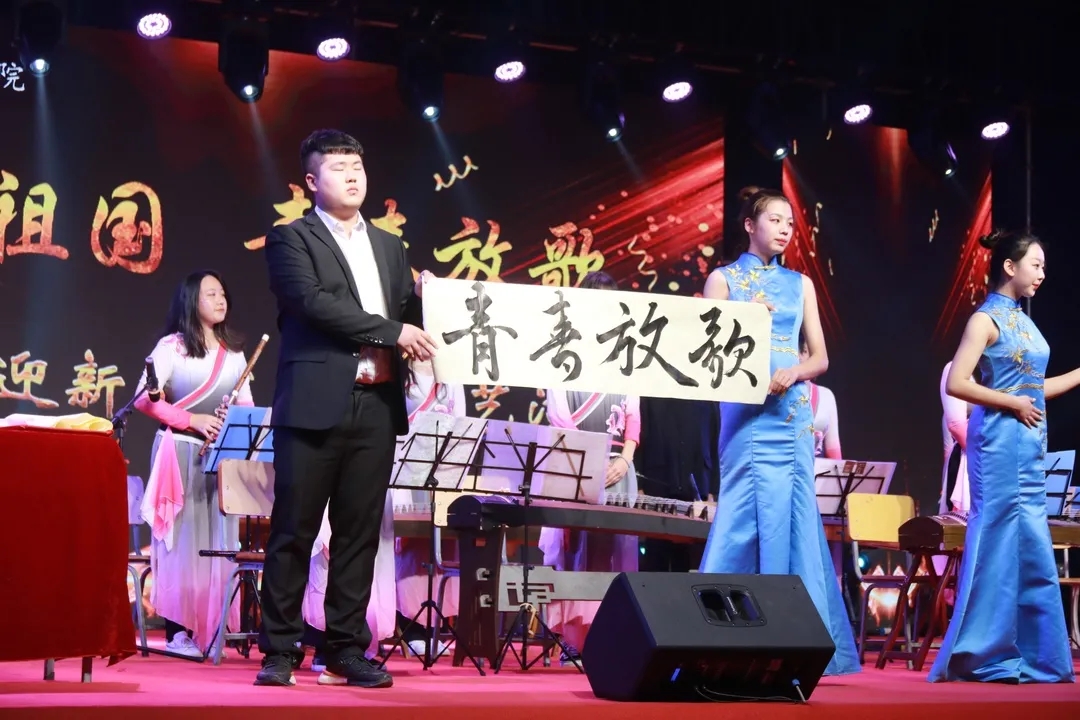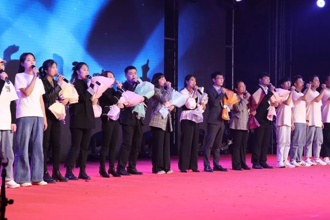 演出的最后由秦校长和陈延民书记领唱,全场观众集体合唱歌曲《歌唱祖国》,将演出现场点燃,在全场新生的欢呼和喝彩声中,晚会正式拉下了帷幕。