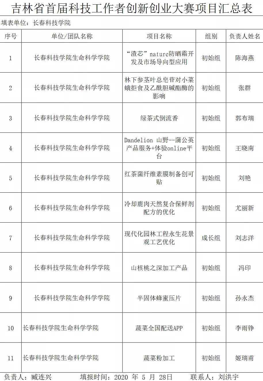 此次比赛是吉林省首次举办全省科技工作者创新创业大赛,汇集了省内多家高校、企业、科研院所、孵化器及科技组织推荐的200多个高水平科技项目,其中生命科学学院一共申报了12个项目。从2020年4月开始准备,经过预赛、复赛学院2个项目入围决赛,最终《冷鲜鹿肉天然复合保鲜剂的开发》、《“渣芯”nature防晒霜开发及市场导向型应用》2个项目都获得初创组三等奖的出色成绩。收到大赛通知后,生命科学学院臧连兴书记高度重视,积极组织开展项目征集申报工作,获得了优秀组织者奖。