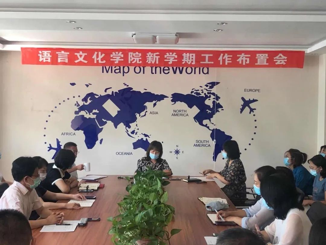 夏日远去,秋意渐浓,伴着秋风一起来的还有2020年的新学期。为全面贯彻落实党的十九大和全国、全市教育大会精神以及《深化教育教学改革全面提高义务教育质量意见》精神,统筹推进疫情常态防控形势下的教育教学工作,确保新学期学院工作有序开展,2020年8月22日,语言文化学院于第一教学楼219会议室召开了新学期工作布置会。本次会议由语言文化学院院长高杰主持,语言文化学院全体教师参加了此次会议。