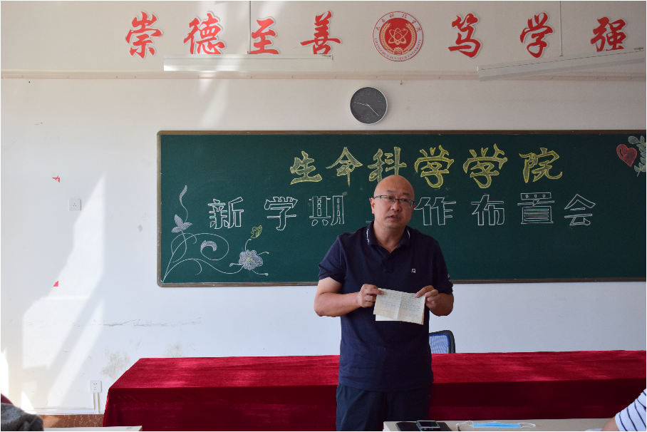 新学期新气象,为有效落实疫情防控措施,切实保障学生生命安全和身体健康。根据疫情防控要求, 8月22日上午九点在四教513召开新学期工作部署会,本次会议由胡铁军院长主持,生命科学学院全体教师参加了此次会议。