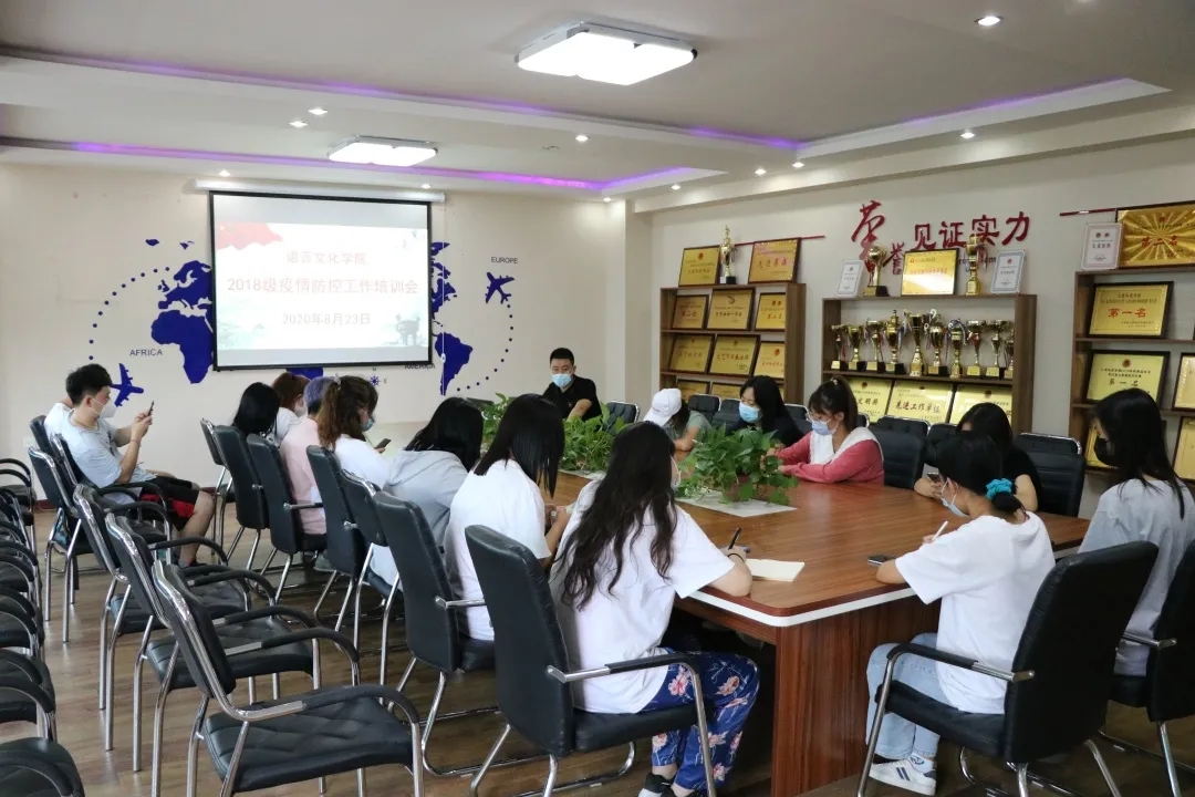 为贯彻落实省、市疫情防控指挥部关于教育系统的通知精神,充分发挥学院学生干部在疫情防控和常态化管理工作中的重要作用,强化学院2020年秋季开学疫情防控工作,提高防疫防控能力,确保复课后的师生安全,做到正确应对、科学防控。语言文化学院于2020年8月23日下午4点在第一教学楼219会议室召开了2018级疫情防控工作培训会,本次会议由党总支副书记陈恭鑫主持,2018级各班负责人参加了此次会议。