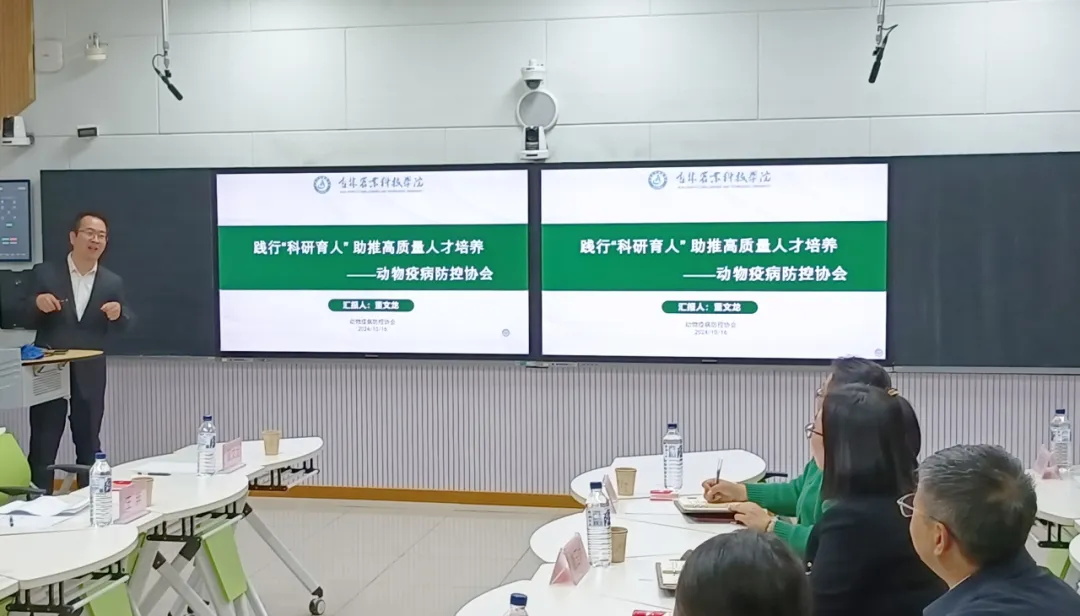 会上,主任董文龙围绕“践行‘科研育人’助推高质量人才培养”主题进行汇报。介绍了动物疫病防控协会的运作模式,强调“厚植三农情怀,推动科学实践,练就兴农本领”的培养宗旨,并重点推动实验技能、数据分析、写作及团队意识的培养。