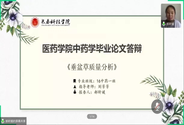 5月31日,在医药学院院长闫立安,副院长张玉兰,中药学专业主任刘芳芳等人的指导与带领下,中药学专业2020届毕业生毕业论文线上答辩工作圆满结束。