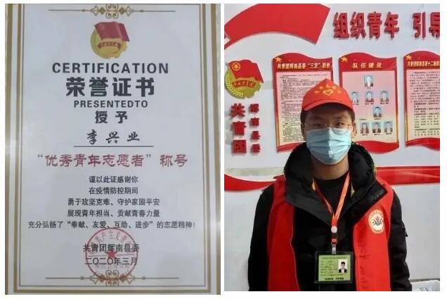 “当前,新型冠状病毒感染肺炎疫情的防控工作正处于关键时期,一场疫情防控战役已经打响,为了打赢这场没有硝烟的战争,我志愿义务参与到社区新冠肺炎疫情防控的第一线,不畏艰难、共克时艰,为抗击肺炎疫情贡献自己的力量,请组织予以批准。”2月13日,生命科学学院2018级动物医学三班于雪男在请战书中写道。随后,他参与了夜间社区执勤,人员体温测量,登记来往人员车辆信息等工作。共青团辉南县委在为该院17级食品质量与安全一班学生李兴业颁发的荣誉证书中这样写道:“勇于攻坚克难、守护家园平安。展现青年担当、贡献青春力量,充分弘扬了奉献、友爱、互助、进步的志愿精神!”
