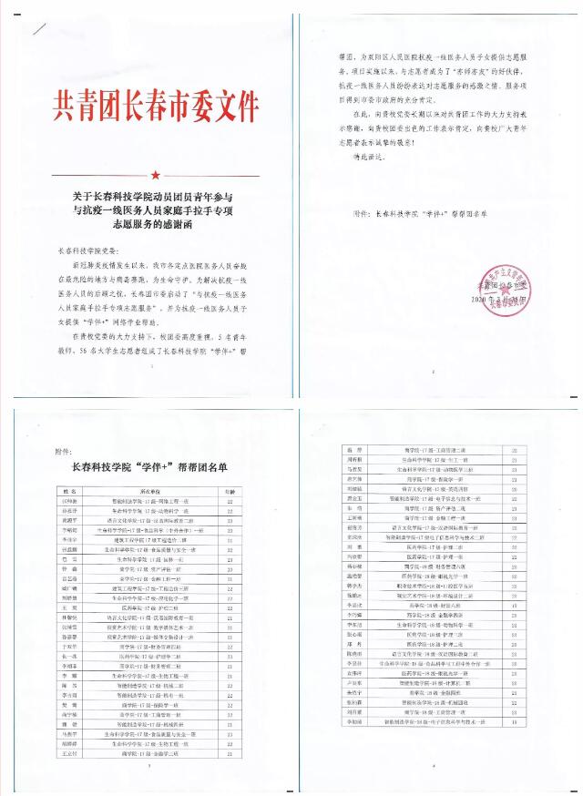 截至目前,长春科技学院已经有262名学生参与到“战疫”志愿活动中, 312名学生开展“学伴+”活动,足迹遍布浙江、吉林、黑龙江、辽宁、山东、河北、内蒙古等省市自治区,广大的长科学子用行动诠释了青年一代的勇敢与坚强,筑起了一道道靓丽的风景线,用年轻人应有的担当书写了一个又一个的最美青春抗疫故事。