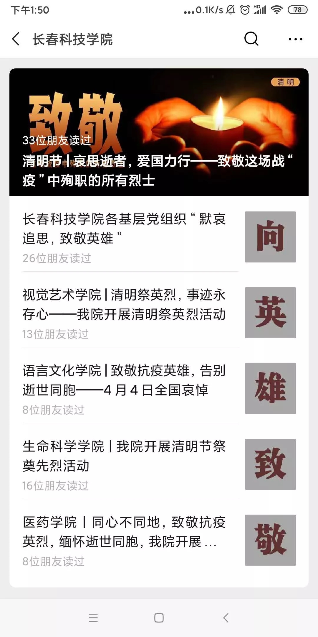 缅怀英烈,厚植爱国情怀。响应国家号召,组织全校师生积极参加4月4日10时全国性哀悼活动,为抗击新冠肺炎疫情牺牲的烈士和逝世同胞表达深切哀悼。围绕清明节祭祖和怀念先烈这一主题,组织各支部开展我们的节日·清明“网上祭英烈”寄语活动,引导大家铭记革命历史、崇尚革命英雄、传承英烈精神,自觉培育和践行社会主义核心价值观。