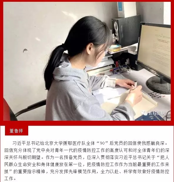 “在新冠肺炎疫情防控斗争中,你们青年人同在一线英勇奋战的广大疫情防控人员一道,不畏艰险、冲锋在前、舍生忘死,彰显了青春的蓬勃力量,交出了合格答卷。” 3月15日,习近平总书记给北京大学援鄂医疗队全体“90后”党员回信,总书记的回信不仅鼓舞着北京大学援鄂医疗队的青年党员,同样也激励着长春科技学院广大的青年学子,引发热议。