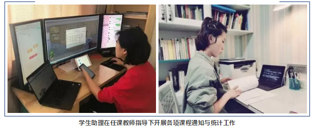 充分发挥学生党员队伍和学生干部队伍的示范带动作用,课前组织班级同学调试平台及软件,及时发现学生线上学习过程中出现的各种问题和困难,配合任课教师做好线上教学班级的组建和测试等各项教学辅助工作,确保线上教学的有序推进。学校每位任课教师、每个教学班级均配备了1-2位学生担任任课教师的教学助理,为线上教学的有序实施打下了基础。