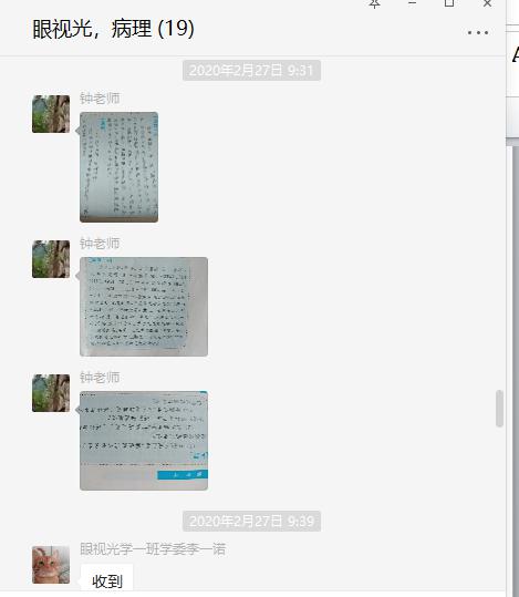 学生积极与授课教师进行教学互动,认真完成课后作业。教师把互动的内容和作业情况截图并保存,作为考核的依据。除了学习书本的知识以外,老师还利用休息时间教学生防疫常识、网课期间眼部的保养等知识。