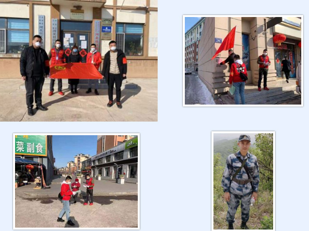 在抗击疫情的关键时刻,积极参加吉林省洮南青年防疫志愿者的杜源同学心系社会安宁和人民安危,时刻做好大学生的带头模范作用,他不仅是一位学院的大学生预备役教官,还是长科国旗护卫队的一员,来自17级产品设计二班。他说:“作为当代大学生预备役教官和国旗护卫队队员,要勇于在国家和人民有困难的时候挺身而出,希望能尽自己一份力量打赢这场没有硝烟的战争!”所以他立刻就报名了当地的志愿者,负责对进出市内人员进行登记和检查。在关键时刻考验党员精神,相关工作还得到了广大百姓的理解和认可,这是他最骄傲的事情。