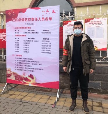 17级数字媒体二班的李开宇同学,家住吉林省永吉县口前镇河北社区,曾在空军服役,原服役于空军93010部队,现退伍复学的他,也成为了学院的一名预备役教官,深知在非常时期国家需要他、社区需要他,第一时间联系社区居委会,主动请缨加入控疫第一战线,参加家乡的疫情防控志愿服务。他和社区干部和其他志愿者一起,到各家各户登记情况,并张贴防疫告示,宣传防疫知识,风很大,但暖的是心。