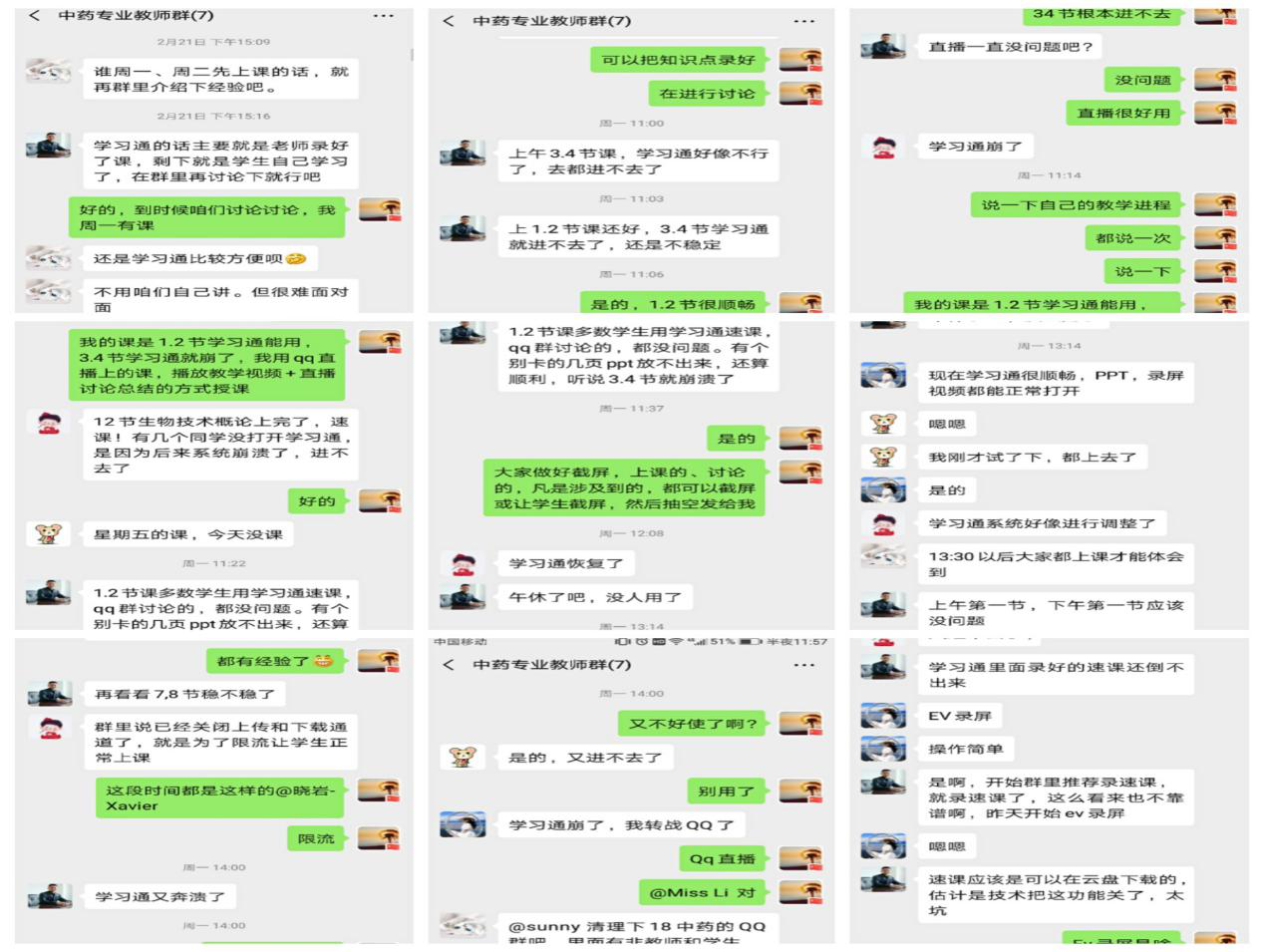 老师们又积极与兄弟院校进行沟通、学习,做好了用QQ群直播、并同微信群发布签到、作业的应急预案。