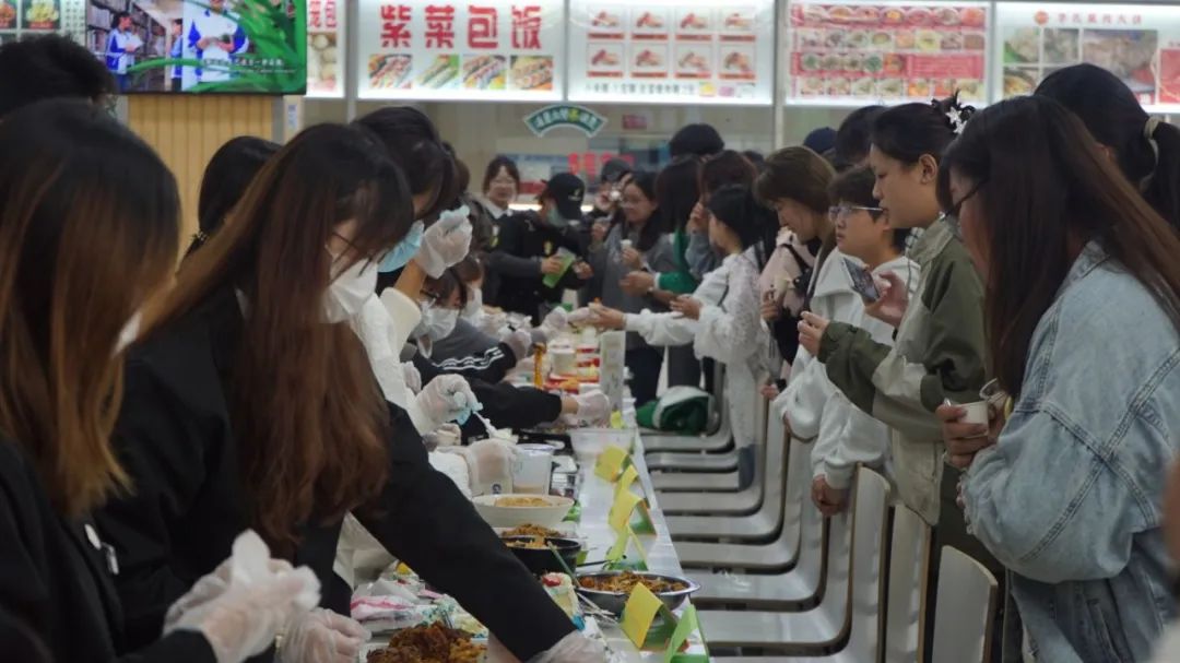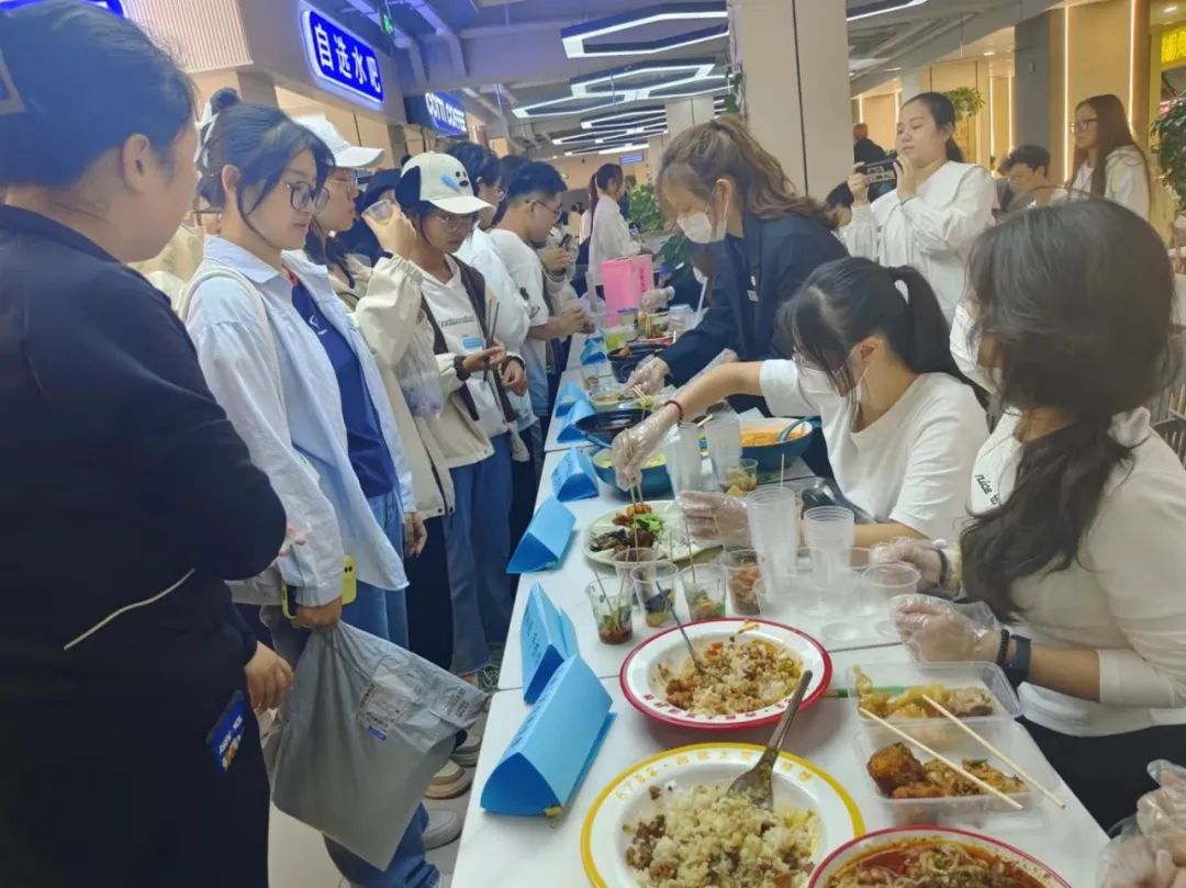 活动期间,现场工作人员为了保证食品卫生,全程佩戴口罩和手套为前来试吃的同学提供一次性试吃杯。从经典小吃到创意料理,从甜蜜烘焙到清爽饮品,同学们穿梭于香气四溢的美食间,或驻足品尝,或欢声笑语,共同探索着那些令人难以忘怀的味道。
