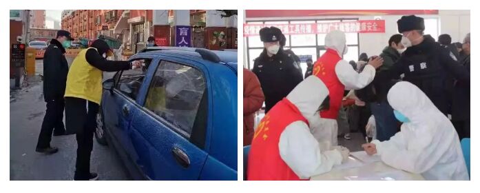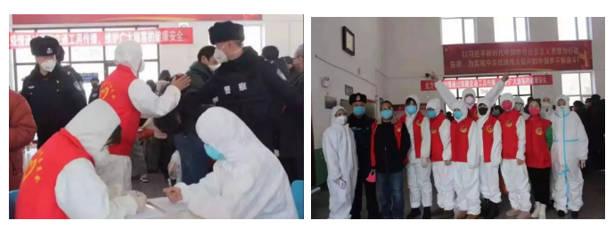 吉林省长春市, 17级动物医学一班贾凡,19级动物医学三班王雅,参加吉林省青年防疫志愿活动。