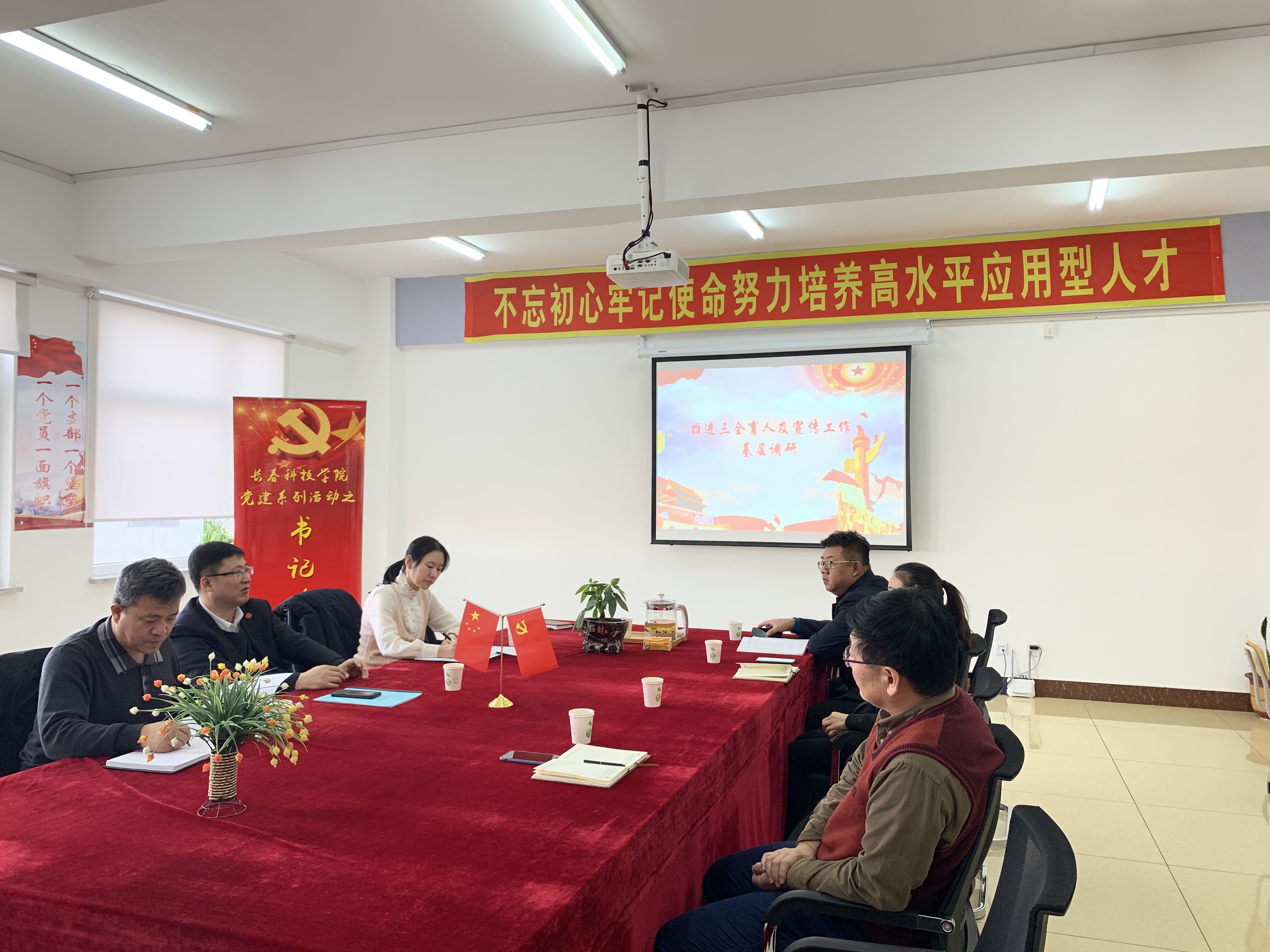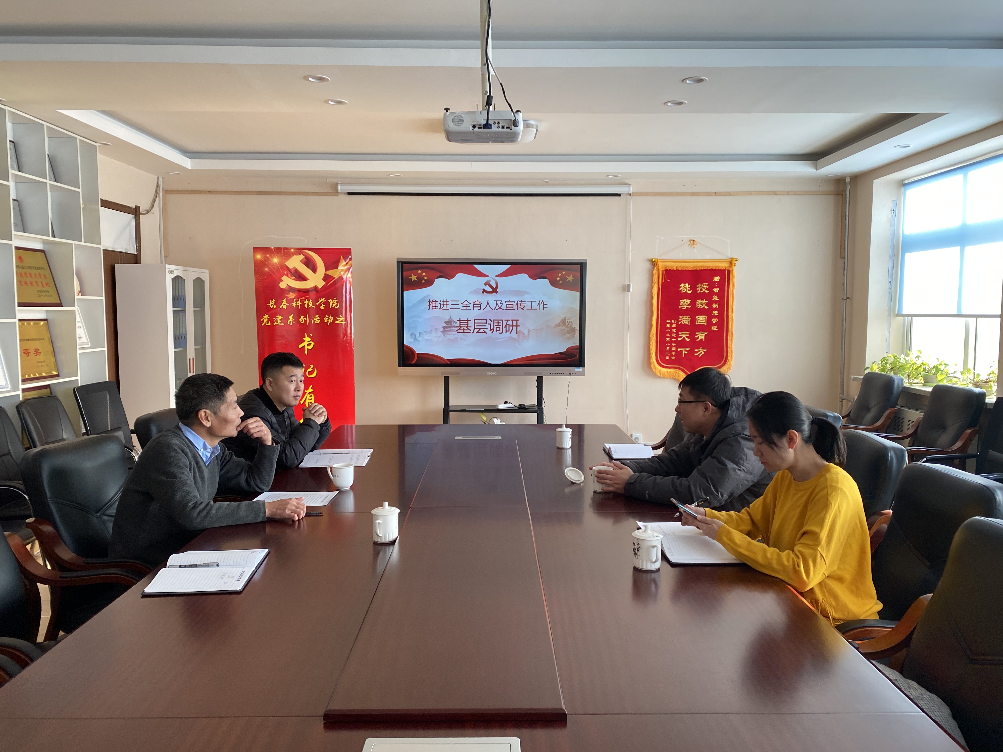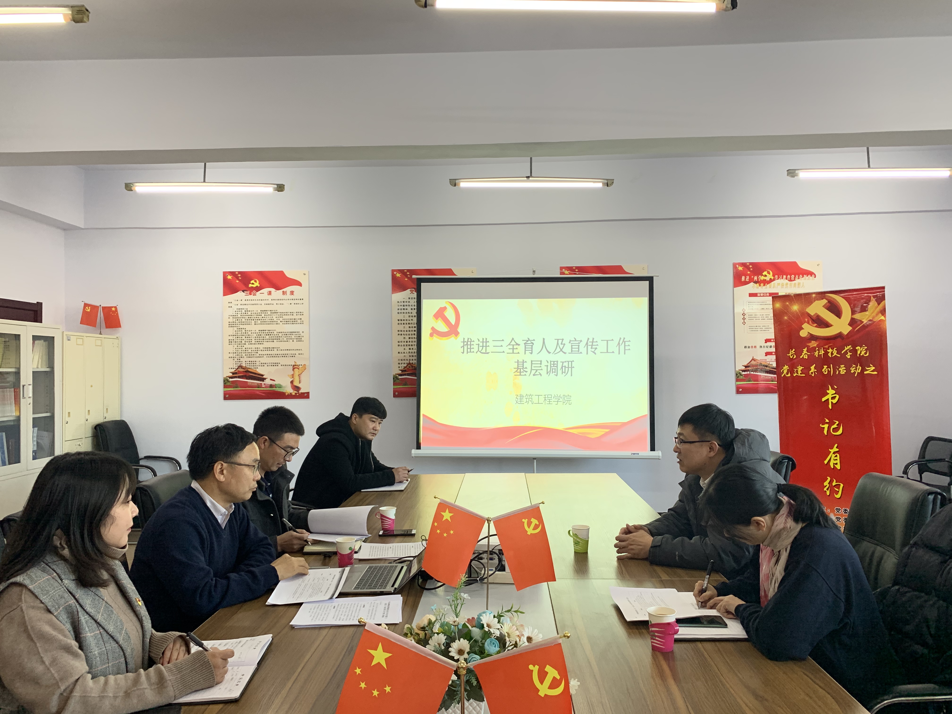 调研过程中,陈书记对学生课堂学习情况、学习环境,老师们备品存放问题,党团活动室的建设情况和支部主题教育开展情况也进行了关心和指导。高芳部长对师生提出的一些三全育人和宣传思想工作的问题以及三全育人示范院系建设工作做了详细的回答和讲解,对学校下一年宣传思想工作征求了意见。