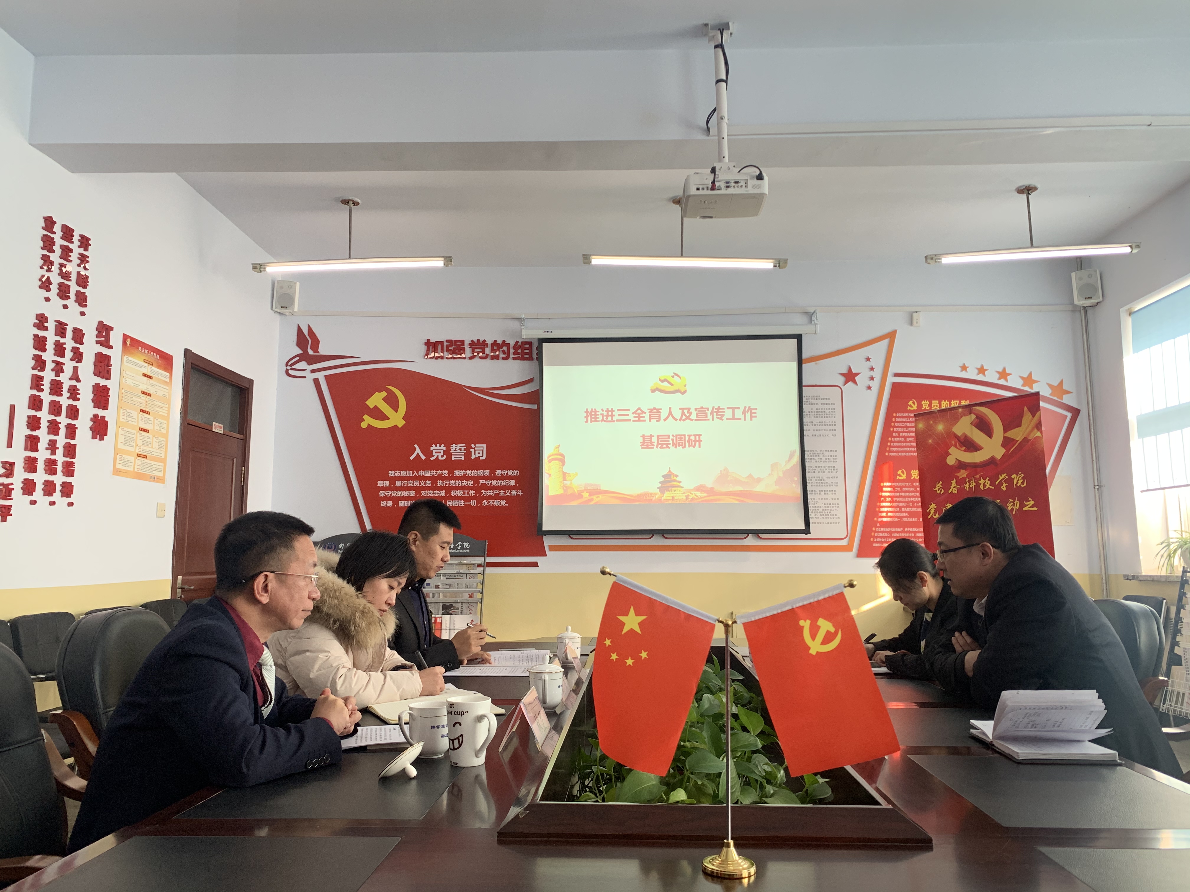 为落实立德树人根本任务,推进落实学校“三全育人”综合改革,针对“不忘初心,牢记使命”主题教育中关于三全育人和宣传思想工作座谈会、问卷调查中的问题,党委书记陈延民深入基层与党总支书记、支部书记、辅导员和教师代表面对面,共同探讨提升育人质量的对策和措施。党委常委、宣传统战部长高芳,宣传部新闻编辑部主任佟风华、宣传科副科长田天圆陪同调研。