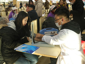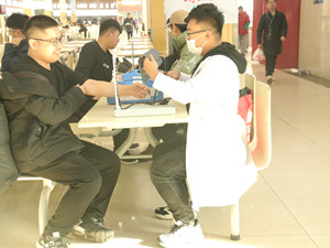 在志愿者有序的组织宣传下,活动现场,同学们陆续地前来问询并测量血压,同时,一些教职工也前来测量。志愿者们面带微笑,认真询问、测量、听测、记录。测量结束后,志愿者们悉心地为他们解释自身血压情况,并细心地叮嘱针对所测血压情况在日常生活中应该注意的事项如:饮食、运动、作息等等。