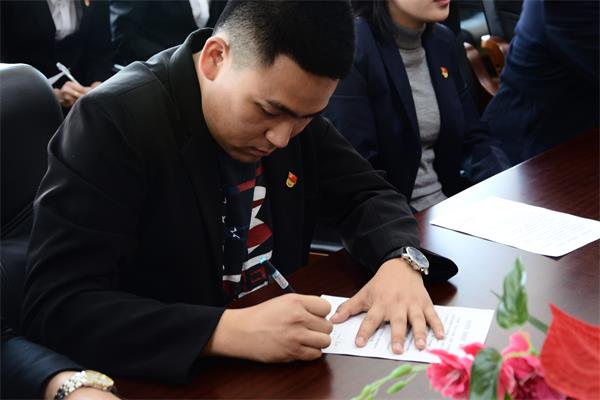 最后,每名党员结合自身情况、亮明党员身份公开承诺,亲笔书写下对党组织的庄严承诺。签完后,同志们纷纷表示,要以习近平新时代中国特色社会主义思想为指导,紧密结合自身实际,不断增强“四个意识”、坚定“四个自信”、做到“两个维护”,要在守初心中践初心,力争做到言必行、诺必践,为广大师生立好标杆、树起榜样。