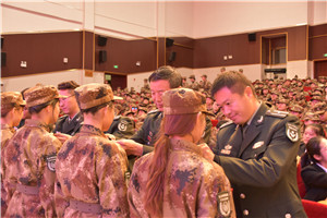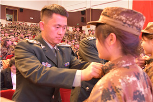 合唱大比武伴随着观众们的掌声圆满结束,接下来继续进行了我院预备役授衔仪式,2018级、2019级共计100名学生代表了学院预备役营全体士兵接受了预备役授衔。
