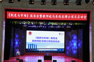 下午,马来西亚UCSI大学副校长林玮、中国市场总监施慧在我校东鳌国际会议中心举办《制度与市场》主题报告会,暨我校教师赴马来西亚攻读硕士项目启动会。此次会议由国际交流与合作处处长王志刚主持。我校校长、副校长盖同祥、人力资源处处长刘立东、宣传部长高芳、国际合作与交流处副处长吴宛蒙及各分院教师和学生代表参加了本次报告会。