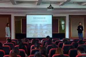 会谈之后,代表团在1教六楼报告厅举行了以“西班牙留学之路-西班牙文化及教育概况”为主题的讲座。讲座形式多样,让学生对西班牙国家概况、高等教育体制、文化及美食、西班牙语学习、海梅一世大学和Hispania学校的留学问题有了全面的了解。讲座之后进行了提问环节,针对在西班牙留学会遇到的各种问题,现场氛围十分热烈。