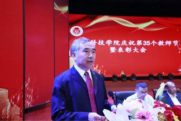 随后,来自语言文化学院老师代表郭妍就如何做好教师做了生动感人的发言。声情并茂的讲述了自己的教育故事,畅谈了对教师职业的感悟,阐述了人民教师的责任担当和使命情怀,精彩的演讲赢得了参会人员的热烈掌声。长科生命科学学院学生代表李安发言。他用诗一般的语言对老师进行了赞美,话语间尽表感念师恩的深情。他表示,作为学生,将以实际行动严格要求自己,以出色表现回报学校,献礼授业恩师!在热烈的掌声中,校长做了题为《聚焦主业主责,强化务实担当,在强国兴教新起点上大力提升育人质量》讲话。首先他代表学校党政领导向一年来爱岗敬业、呕心沥血、埋头苦干的全体教职员工表示节日的问候,向受到表彰、成绩优异的同志表示衷心的祝贺!在中华人民共和国成立70周年即将到来之际,祝愿伟大的祖国不断发展壮大,更加繁荣富强!