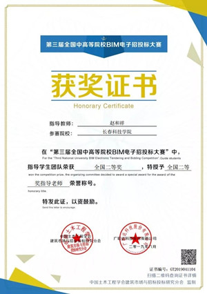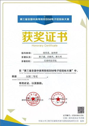 我校建筑工程学院16级工程造价专业学生在第三届全国中高等院校BIM电子招投标大赛中取得优异成绩,参赛代表队同时获得正赛和挑战赛二等奖。