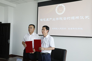 随后,梅花鹿产业学院院长王艳梅向双阳区鹿乡镇政府授学院牌。