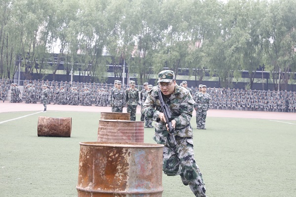 授旗仪式后,学校进行了第二届军事技能大比武。比武内容包括分列式、手榴弹投准、战术基础、武装越野、内务评比五项内容。比武中,参赛学子精神振奋、奋勇争先、顽强拼搏,展现了精湛的技能、过硬的素质和高昂的斗志,展示了前期训练的丰硕成果。分列式整齐划一,口号震天;单兵投掷,准确命中;体能竟拼你追我赶,奋勇当先;军体拳虎虎生风,刚劲有力。现场呼号震天,加油声阵阵……