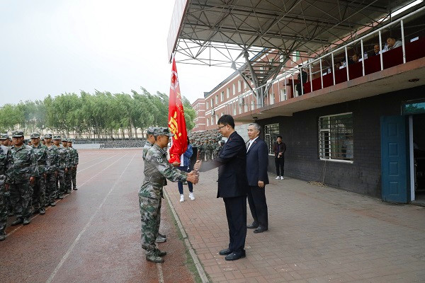 双阳区人民武装部部长王学刚、政委杨小尤,长春科技学院党政领导班子成员莅临现场,各学院党总支副书记、全体辅导员老师及全校大学生总计约5000人参加授旗仪式。
