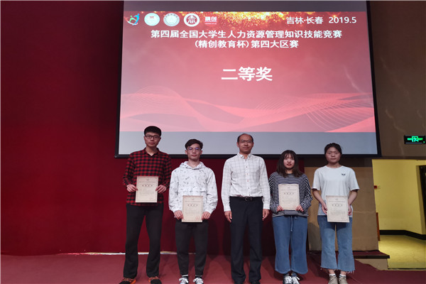 本届大赛在学校的支持下,商学院领导亲自部署,由人力资源管理专业老师指导,由2016级人力资源管理专业的胡菁霞、周国林;2017级人力资源管理专业的田唱、杨嘉和四名同学组成参赛队伍,人力资源管理专业王娜、李超两位老师带队参加大赛。比赛中,我校代表队与吉林大学、辽宁大学、沈阳航空航天大学、东北农业大学、东北林业大学、黑龙江大学、吉林财经大学等高校学生同台竞技。经过两天的激烈角逐,我校代表队荣获二等奖,指导老师获得大赛优秀指导教师奖。