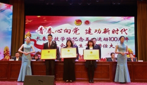 为深入全面贯彻落实党的十九大精神和习近平总书记在中共中央政治局第十四次集体学习上的重要讲话精神,深入学习习近平新时代思想,纪念五四运动100周年,进一步推动我校共青团工作发展,继续发扬优良传统,激励先进,树立良好的校园文化氛围,4月28日中午,由共青团长春科技学院委员会主办的“青春心向党,建功新时代”长春科技学院纪念五四运动100周年表彰大会暨学生干部聘任大会于我校东鳌国际会议中心举行。