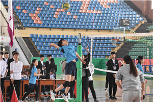 第二局语言女排选手们转变策略,一次次的走位,一传二传三传的默契配合,使她们掌握了主动权连续夺得比分,但我院女排选手们并未气馁,我院选手多次极限防守,缩小了比分的差距,第二局比赛语言文化学院胜。