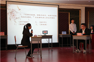决赛一开始,两队选手分别进行了自我介绍,用响亮的声音喊出了他们的口号,充分展现了他们深厚的国学文化底蕴和“永争第一”的精神面貌。比赛场上,他们争分夺秒的抢答,面对难度系数大的问题也能够做到从容作答,充分展现出了当代大学生的精神风貌。