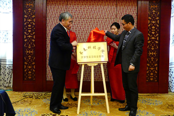 我校校长和王炜分别代表双方签订了校企合作协议,并为长春科技学院大学生实习就业基地揭牌。