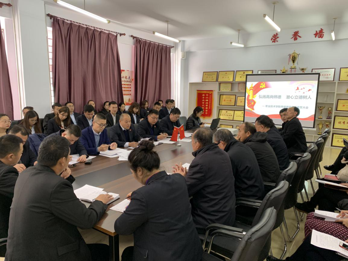 为贯彻落实学校关于开展师德师风建设活动的文件精神,加强教师队伍建设,激励教师志存高远、爱岗敬业、为人师表、教书育人,树立良好的师德师风,全面贯彻党的教育方针,2019年3月21日,职业技术学院组织全体教师在党团活动室召开了以“弘扬高尚师德,潜心立德树人”为主题的师德师风建设承诺宣誓大会。学院院长、党总支书记刘晓辉、副院长张井柱出席本次会议,大会由党总支副书记、副院长王东红主持。