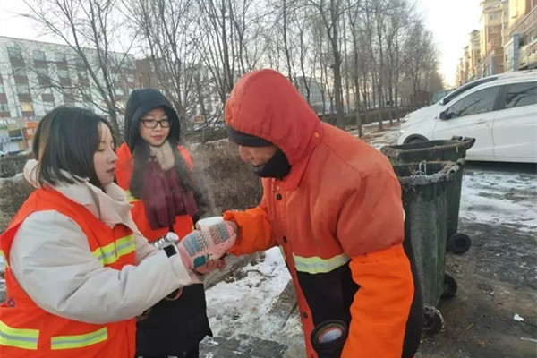 12月23日早上七点半,长春科技学院语言文化学院志工部在学校北门举行了“珍惜环卫工人劳动成果 不随手乱丢垃圾”活动。全体志工部同学参加了本次活动,环卫局的各位领导也对本次活动十分重视,在百忙之中赶来,进行了大力支持。志工部的同学们携带热水,为在一线劳动的环卫工人们送去了关爱和温暖。