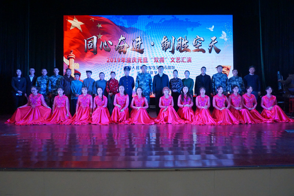 “军民鱼水情,文艺进军营”。12月31日,元旦佳节来临之际,我校师生文艺骨干一行40人在校党委书记陈延民的带领下走进中国人民解放军93246部队,参加主题为“同心奋进·制胜蓝天”2019年度元旦“双拥”文艺汇演。部队相关领导以及200余名部队官兵观看了演出。