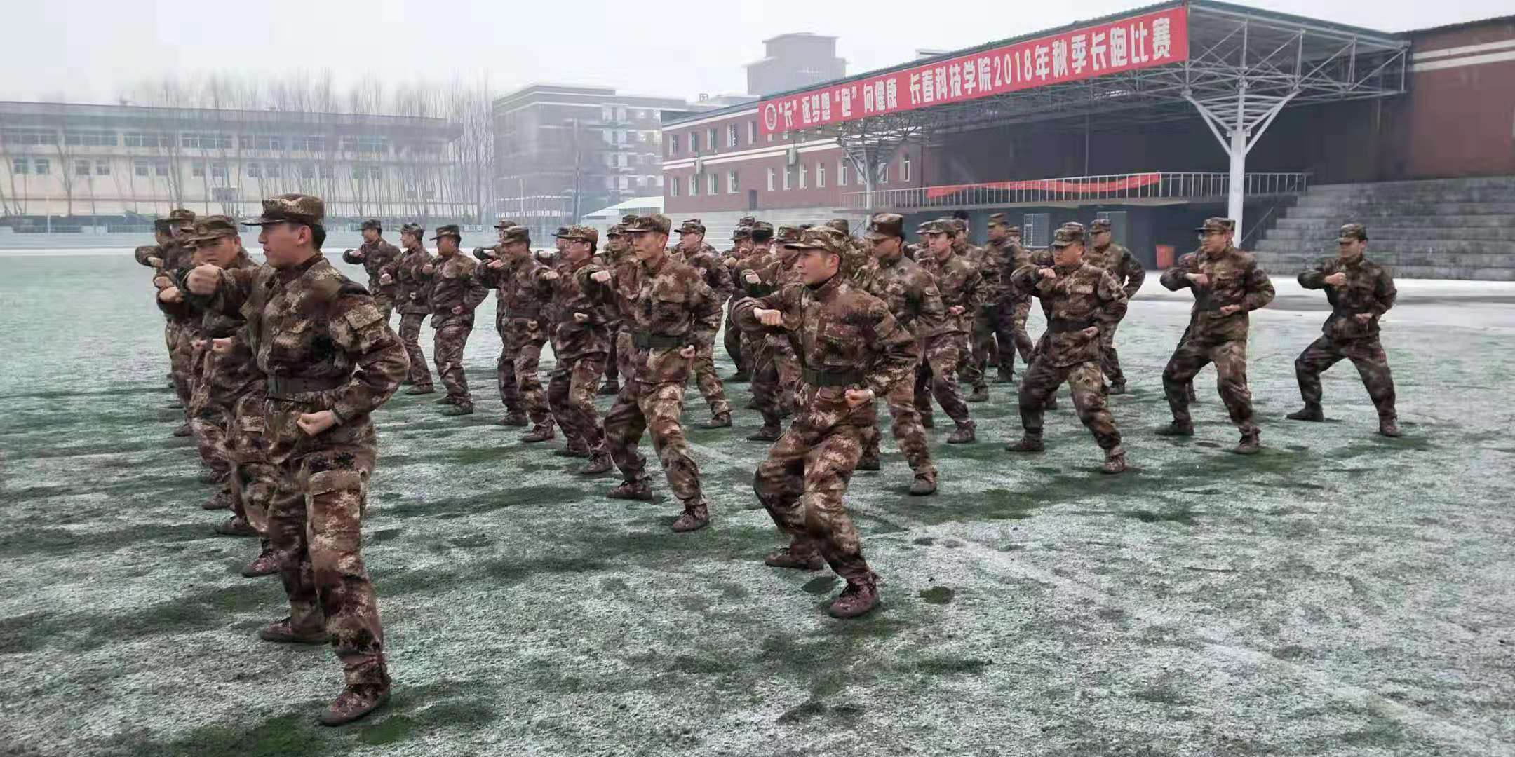 在寒冷的体育场上,一群身穿迷彩的活力青年整齐的站着军姿,有力的踏着正步,挥舞着拳头。作为新生教官,他们思想政治素质高、军事素质过硬、心理素质稳定、管理能力全面,是会讲军训要领、会做示范动作、会教行为规范、会做思想工作的优秀学生。他们是新生管理工作的主力军,是新生思想和融入校园的引导者,是联系师生的重要桥梁和纽带,这就是高职预备役教官。