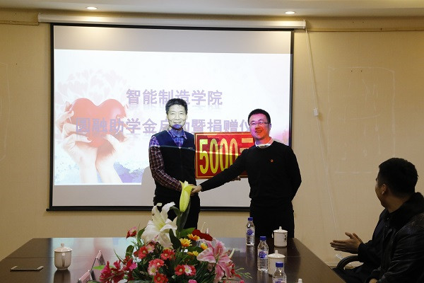 “当年艰苦求学是老师的关怀、学校的帮助使我顺利完成学业,一直以来未曾忘记,始终心系母校、感念师恩,现今希望能为母校尽一份绵薄之力”, 2001级信息工程专业张琳回到智能制造学院忆起往昔动情说到。为表示感激之情现场设立“圆融助学金”并当场捐赠5000元现金。