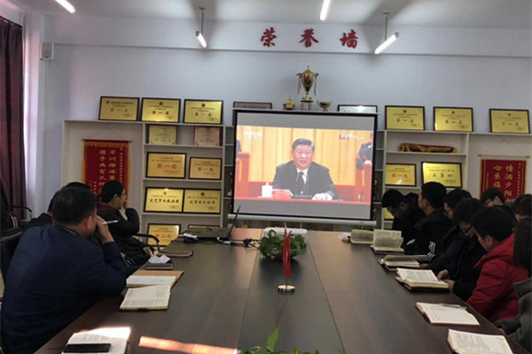 为庆祝改革开放40周年,充分展示改革开放40年的伟大成就,引导广大党员干部群众更加深刻地认识习近平新时代中国特色社会主义思想是全面深化改革的根本指导思想,上午10时,职业技术学院党总支全体党员同志在三教113共同观看庆祝改革开放40周年大会,职业技术学院院长、党总支书记刘晓辉,党总支副书记、副院长王东红,副院长张井柱,学工办主任杜锐、技师学院郗宝库处长及辅导员参加收看。